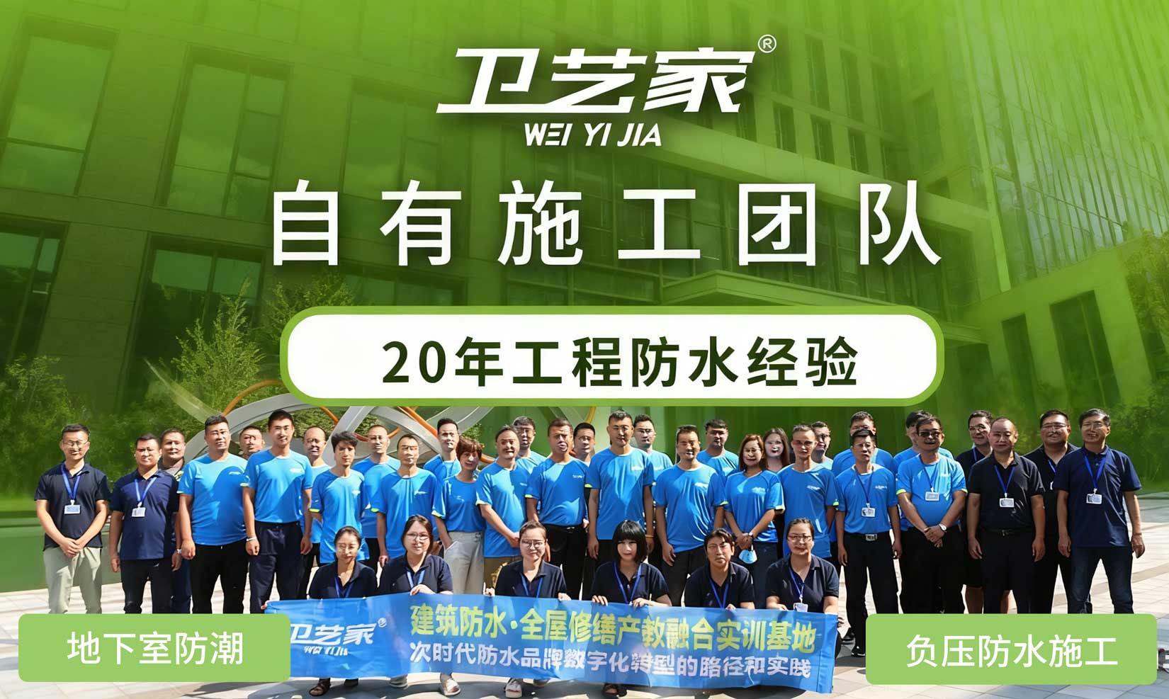 卫艺家防水,创始人专业防水服务20年,提供上海地下室负压防水施工等专业防水工程施工,自有施工团队,20年工程防水经验。卫艺家防水凭借创始人 20 年的专业积淀和国家高新技术企业的技术实力,以负压防水技术为核心,为各类建筑渗漏难题提供系统性解决方案。作为拥有二级防水施工资质、30 余项国家专利的正规企业,卫艺家已累计完成超 8000 个防水项目,从别墅地下室负压防水工程、大型建筑屋面防水到老旧小区平改坡防水工程,用 "背水面主动防渗" 的技术突破,重新定义了防水工程的标准。